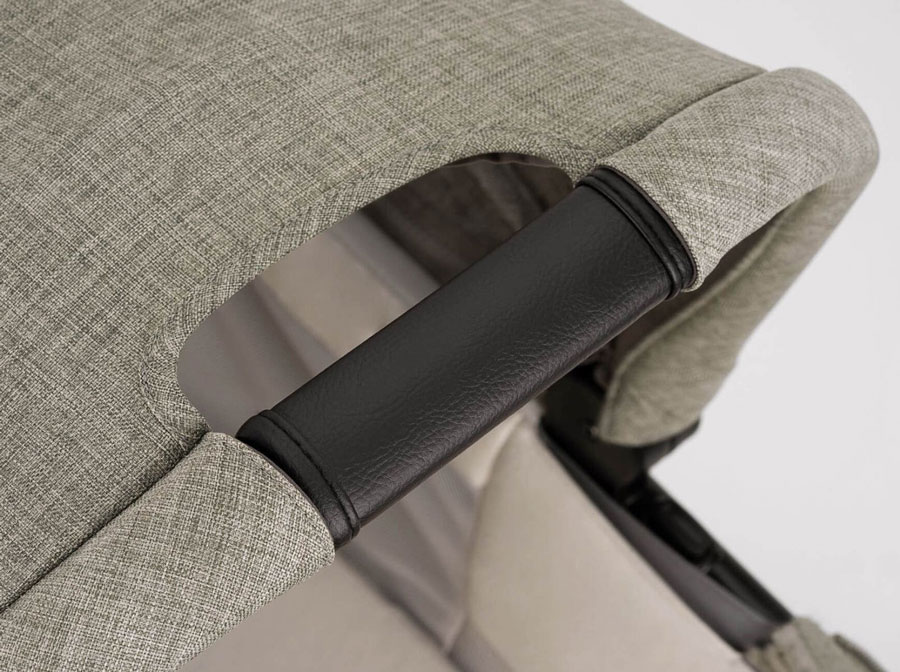 Вградените памет бутони и ръчно обшитата дръжка от еко кожа позволяват лесно и удобно отделяне на коша от шасито – защото родителите заслужават повече гушкане, а не излишни усилия.