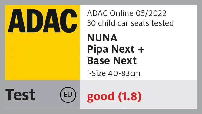 Оценка 1.8 (добър) от ADAC при тест на детски столчета (05/2022).