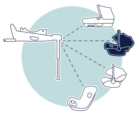 Столчето е съвместимо и със следните бази: Nuna base™ curv 360°, Graco SnugTurn™ i-Size R129, Joie i-Base™ LX 2, Joie i-Base™ 2, Joie i-Base™ Encore.